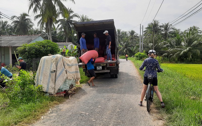 The cycling Mekong delta day tour starts in Cai Be town, where you will cycle 25 km on small single track trails or countryside roads through fruit orchards in the rural areas of Cay Lay and Cai Be.